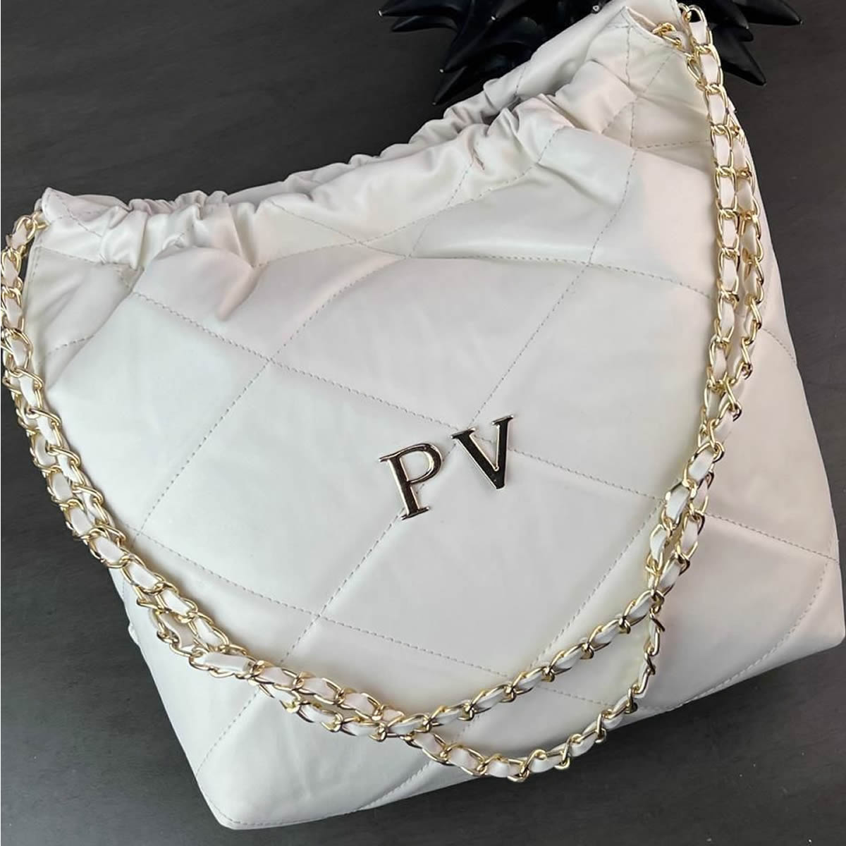 Fabricado en material sintético esponjoso, cuenta con interior de terciopelo con cierre imantado, que protege tus pertenencias. Incluye cadena decorativa y correa ajustable, brindando versatilidad para llevarlo al hombro o cruzado.